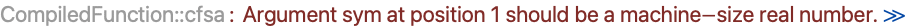 However, if you pass the compiled function an input that is not a real number, an error message is returned. The Wolfram Language still returns a result, but has not used the compiler.