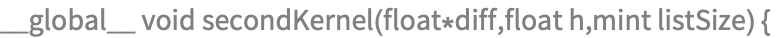 __global __ void secondKernel(float * diff, float h, mint listSize) {