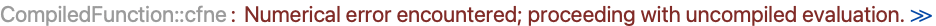 If a compiled function encounters a runtime error in its operation it will by default issue a message and run the computation outside the Wolfram System compiler. Running a computation outside the compiler will use features of the Wolfram Language such as extended precision, and so might generate a result. But if you know that you do not want results in these cases you might want to avoid the time for the computation.