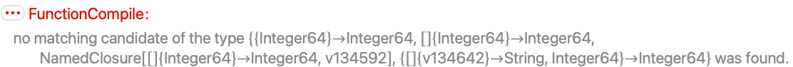 A function that passes the type in or out of compiled code cannot be compiled because the system does not know how to convert it into an expression: