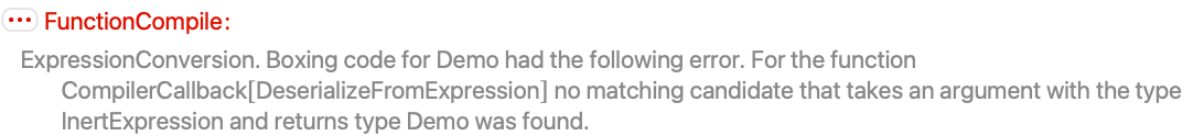 This declaration implements a cast from "Demo" to an "InertExpression". It is very similar to the serialization example seen previously and could use the serialization code that was used previously: