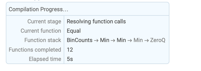 When individual compilations are run, they may put up a progress monitor. This gives an indication how the compilation is proceeding: