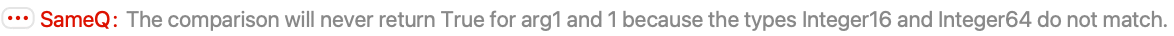 However when comparing a non-machine integer with a constant, the warning is generated. The comparison is aways false: