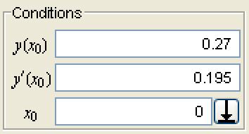 The conditions panel typically reflects the starting position and (if applicable) the starting independent variable value.