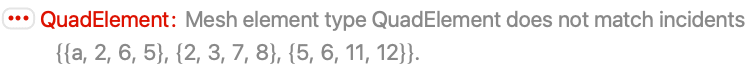 - In QuadElement[{e1,…,en}], all elements ek need to be of the same order.