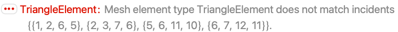 - In TriangleElement[{e1,…,en}], all elements ek need to be of the same order.