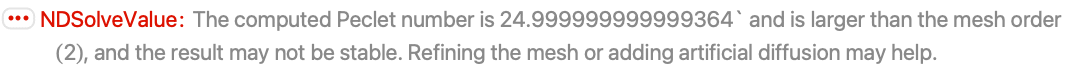is the diffusion coefficient. If the Péclet number is larger than the mesh order, then the stability of the solution may become a concern and the message is given.