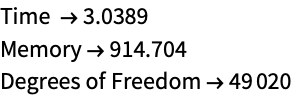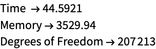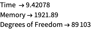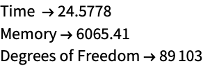 Note that due to the finer mesh used, the number of degrees of freedom has been increased considerably. One thing to keep in mind is that when there is enough RAM memory available, then the out-of-core functionality will be slower. This option should be only be used if NDSolve runs out of memory and not on a hunch.