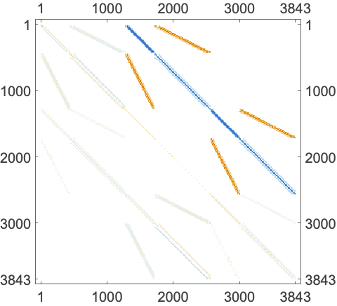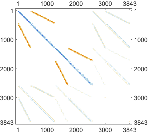 To get an intuition of what the underlying problem is, the assembled discretized system matrix for both cases is displayed.