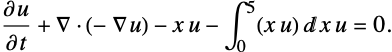 The method presented in the section Transient PDEs with Nonlinear Transient Coefficients can be extended to solve transient integral partial differential equations. The idea is to construct an ElementMeshInterpolation in each time step and make use of NIntegrate to integrate over the current interpolating function. This approach is not limited to integration: in fact, any operation that gives a number can be used on the interpolating function.