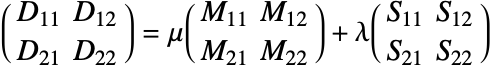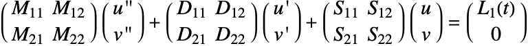 is a linear combination of the mass matrix and the stiffness matrix. The structure of the system matrices for the two dependent variable coupled transient PDEs is represented as follows: