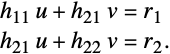 The boundary conditions this time are prescribed displacements on both sides. On the left-hand side of the region, both dependent variables are held fixed with 0 displacement. On the right-hand side, a displacement of one unit in the direction of negative