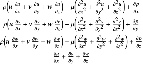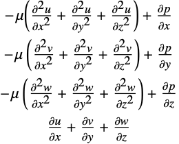 The transient Navier–Stokes equation can also be solved. The vectorized equations are given as: