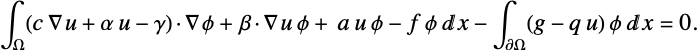 The finite element method is based on the weak form of the differential equation. This form is obtained by taking equation (1), multiplying it by a so-called test function