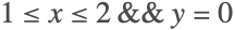 to a value of 0 wherever the evaluation of x0∧8≤y≤10 yields True on the boundary of the region