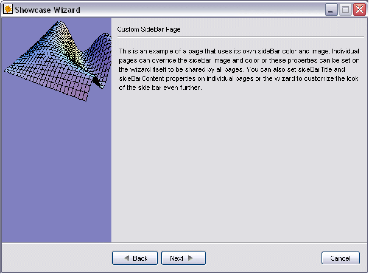 - Widget["Wizard"] definitions are not themselves graphical user interface widgets, but must be displayed within either a Widget["WizardFrame"] or Widget["WizardDialog"]. You would typically run a wizard within a Widget["WizardFrame"] for stand-alone or modeless wizard tools, but you might choose to use a Widget["WizardDialog"] when the wizard runs in a modal session relative to another user interface frame.