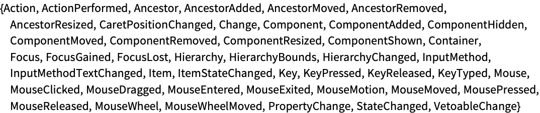 How can you learn the event names to use when attaching the scripts to the events of the button? If you have knowledge of the underlying Java event objects that are provided, you can determine the proper string name following Java naming conventions for the widget, or, if you interact with a running instance of the "Button" widget, you can query its list of valid names using the GUIInformation["widgetName"] function that works with GUIObject instances or within Script[] blocks.
