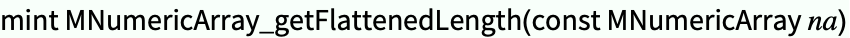 MNumericArray A0;mint len;...len = libData->numericarrayLibraryFunctions->MNumericArray_getFlattenedLength(A0);