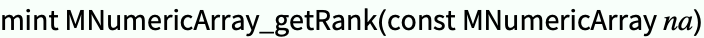 MNumericArray A0;mint rank;...rank = libData->numericarrayLibraryFunctions->MNumericArray_getRank(A0);