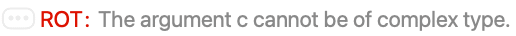 x input/output symbol vector; the symbol value is modified in place y input/output symbol vector; the symbol value is modified in place c input expression real-valued scalar s input expression scalar - ROT[x,y,c,s] is equivalent to {x,y}={{c,s},{-Conjugate[s],c}}.{x,y} where x and y are row vectors.