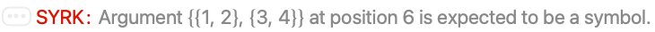 - To use SYRK, you first need to load the BLAS Package using Needs["LinearAlgebra`BLAS`"].