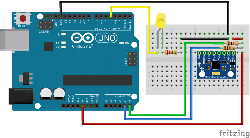 The sensor address is 0x68 and its power management register at 0x6B needs to be initialized: