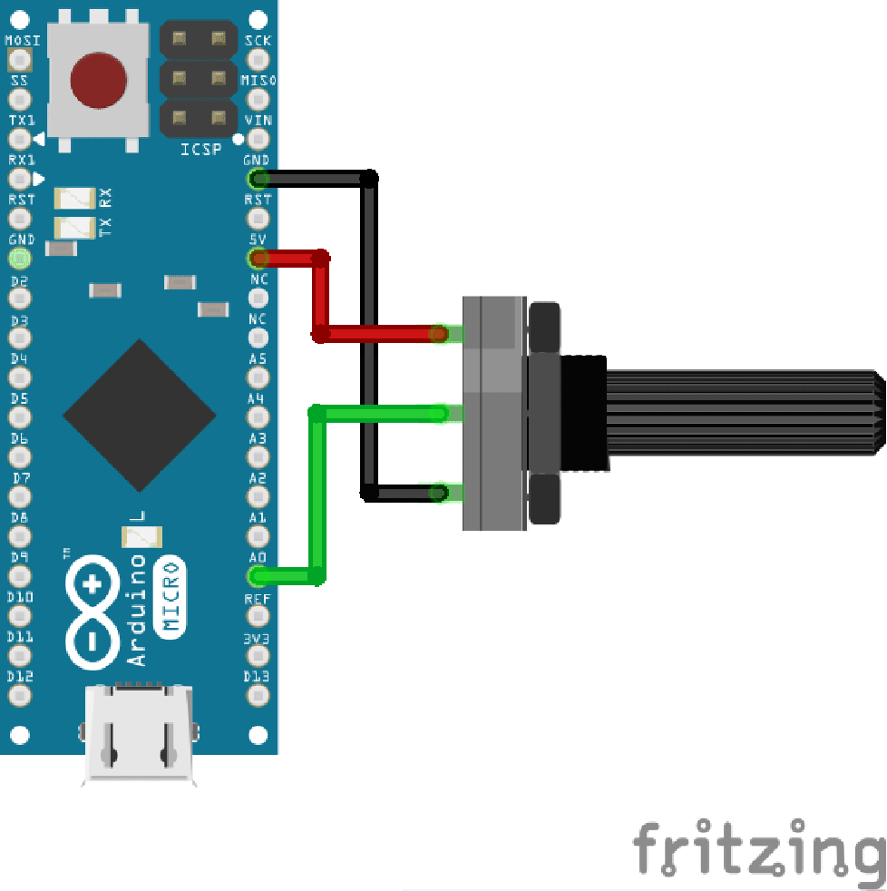 Connect the wiper terminal of the potentiometer to pin A0 and one terminal to GND and the other to 5V.
