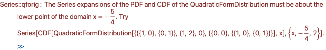 - To use QuadraticFormDistribution, you first need to load the Multivariate Statistics Package using Needs["MultivariateStatistics`"].