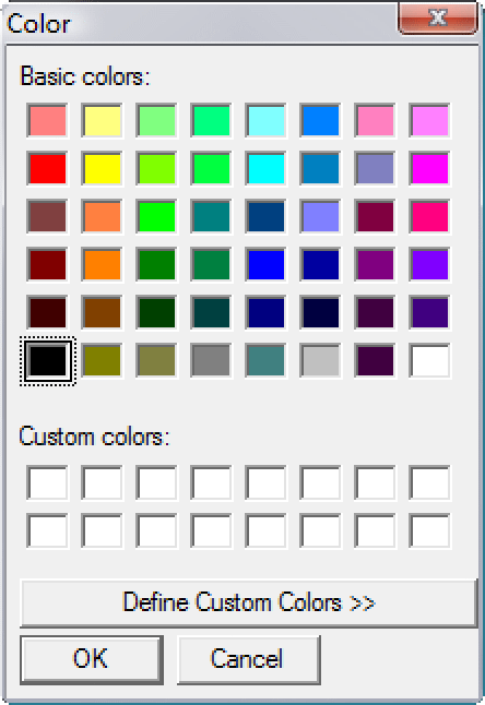 Similarly, clicking the Select Text Color menu item opens the Windows Color dialog box when text is selected: