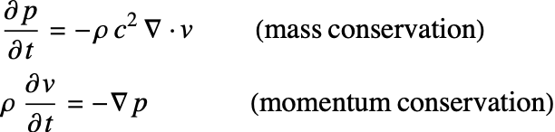 The wave equation (1) is used for modeling the time-dependent (transient) propagation of sound in a lossless medium: