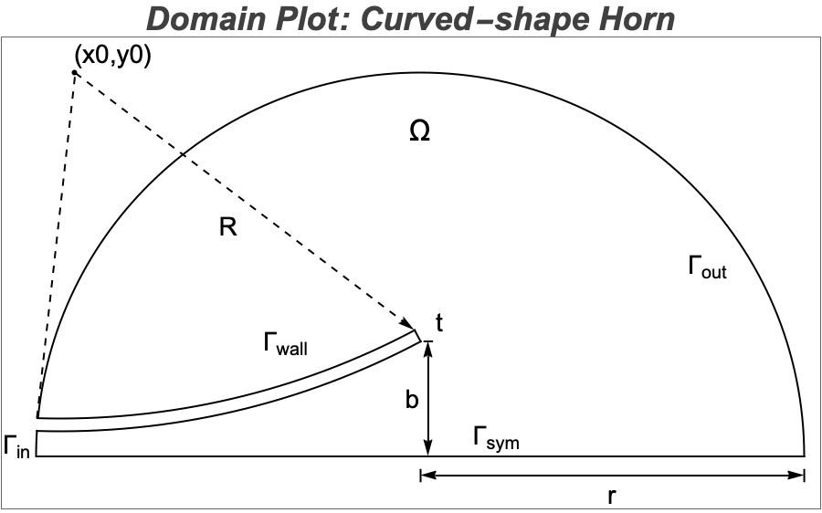 Next, a curved acoustic horn is analyzed as a comparison. By smoothing the shape of the horn, the wave reflection can be further minimized.