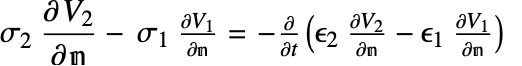 is the time variation of the surface charge density on the same interface.