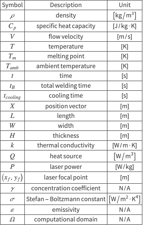 In this model, the laser beam provides the thermal energy to weld the steel pieces and is modeled by the heat source term