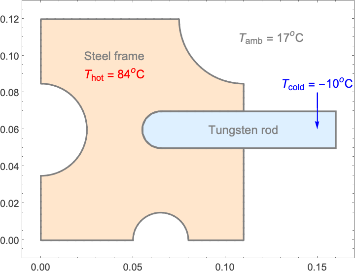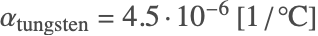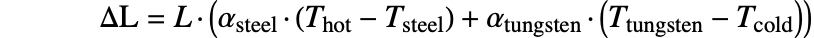 are the thermal expansion coefficients for the steel frame and the tungsten rod: