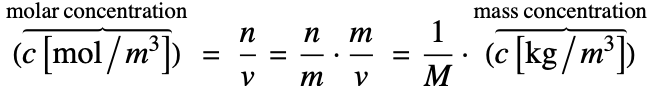 of the species, which denotes the amount of species per unit volume measured in moles. The molar concentration