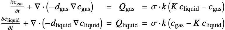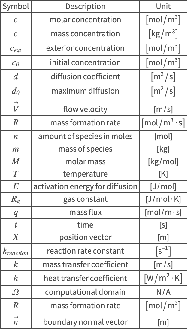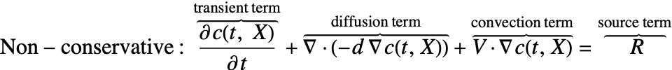 There are two different formulations that can be used to model the transport of chemical species through mass diffusion and mass convection. These are the conservative and non-conservative forms of the mass balance equation: