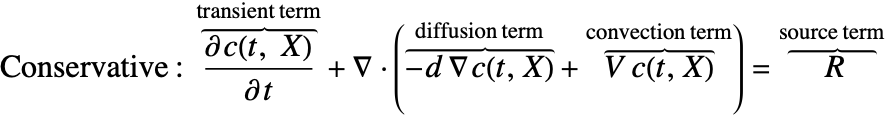 Equation (7) is known as the conservative mass balance equation since the convective mass flux term,
