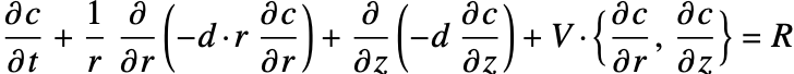 By inserting the coordinates relation (53) into equations (54) and (55), the mass balance equation can be expressed in cylindrical coordinates