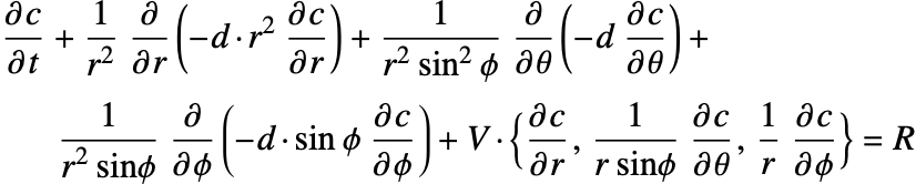 By inserting the coordinates relation (57) into equations (58) and (59), the mass balance equation can be expressed in spherical coordinates