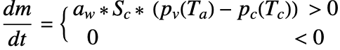 using NIntegrate. Then this result is multiplied by the time step used. For each time interval, a list of values is generated; at the end, Accumulate is used to get the total sum of condensed water.