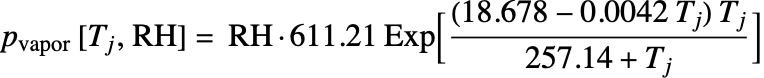 Water condensation can be estimated by equation (25). Both pressures needed to solve the equation are calculated by the following formula: