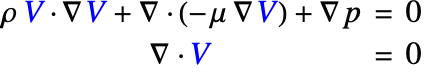 A stable solution can be found if the velocities are interpolated with a higher order than the pressure. NDSolve allows an interpolation order for each dependent variable to be specified. Here, the velocities