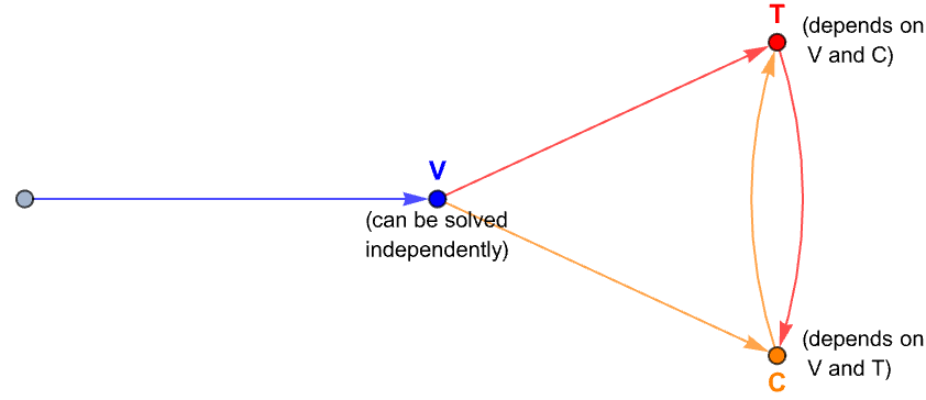 The dependency of the fully coupled model can be illustrated as:
