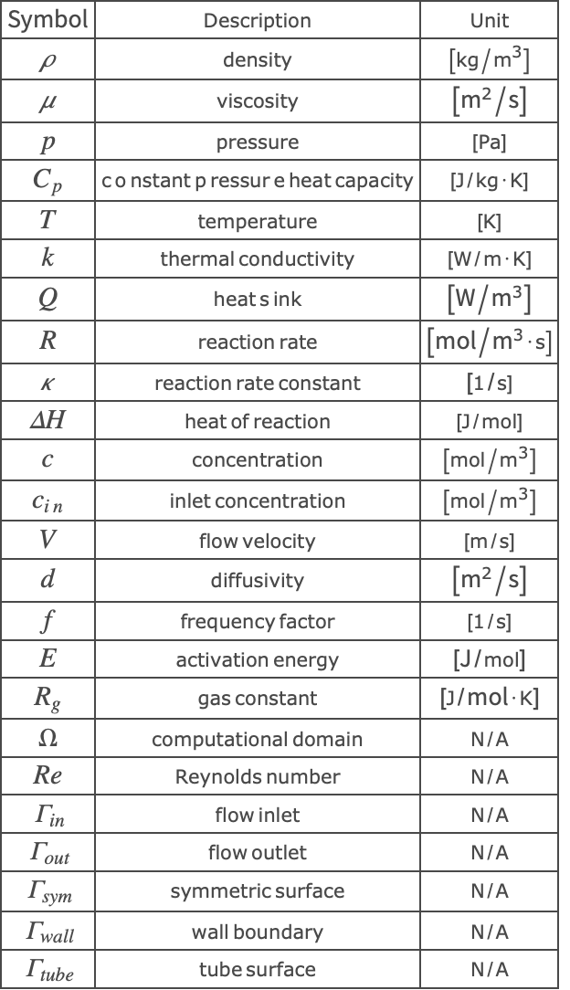 On the walls of the reactor, the mass flux of the species is assumed to be zero and is modeled by an impermeable boundary condition. An outflow boundary condition and a symmetric boundary condition are applied on the flow outlet