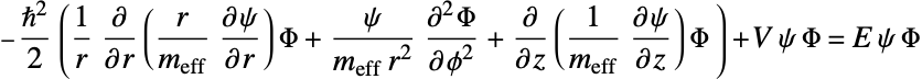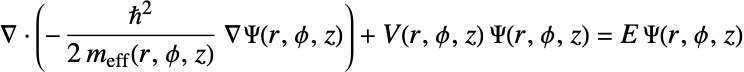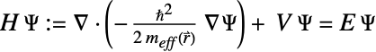 Considering the effective mass and the envelope function approximations, explained in more detail here, the time-independent Schrödinger equation for the electron's wavefunction can be written as in equation 1.