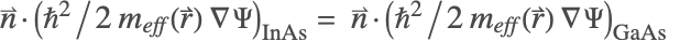 Take note of the way the kinetic term, i.e. the diffusion term, in equation 2 is written. This way of writing the Hamiltonian is usually referred to as a BenDaniel–Duke Hamiltonian. This provides a more accurate model for the mismatch between the effective masses in each region [BenDaniel-Duke, 1966].