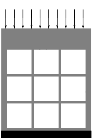 For the loading scheme, the base of the sample is considered fixed, with a vertical force applied from above to induce compression.