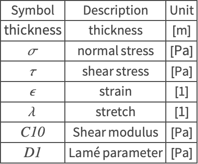 The following tutorial implements a finite element simulation of a biaxial test. Biaxial tests are generally used to show anisotropic behavior. To keep things simple, this example uses an isotropic neo-Hookean model. Material parameters for vascular tissue obtained from the literature are used. [Karimi,2013]. This allows the computational results to be compare with experimental results [Zemanek,2008].