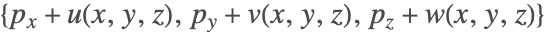 The result is a list of three InterpolatingFunction objects. Each InterpolatingFunction gives the displacement for its respective dependent variable. The three InterpolatingFunction objects make up the displacement vector.