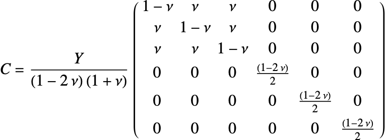 Material parameters where the values are given as Quantity objects can be used. Should a material not be available or different units be needed, then the material properties can be added by specifying parameters like YoungModulus and PoissonRatio directly. The exact property names needed can be found on the reference page of SolidMechanicsPDEComponent.